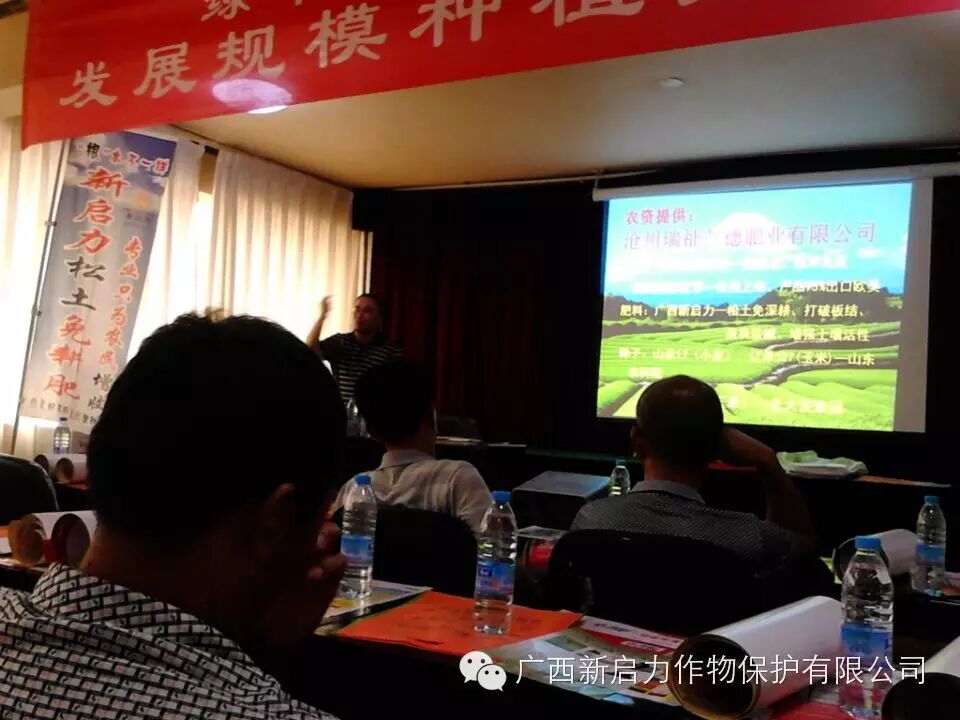 与会共到场各级经销商100多人,活动中瑞祉蓝德肥业有限公司总经理赵永胜至开幕词并讲话,广西新启力生态科技有限公司沧州区域经理王宁到会发展讲话,宣布公司给予的优惠政策和质量承诺,会议在热烈有序的气势中取得圆满成功!